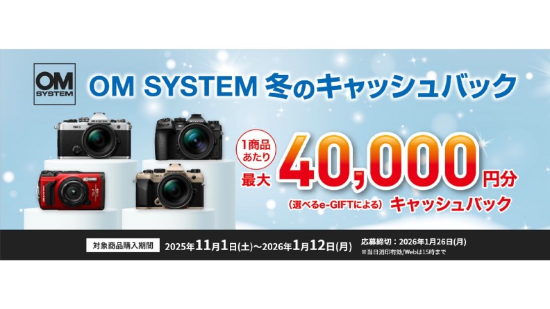 OM SYSTEM、1商品あたり最大40,000円分キャッシュバックの「冬のキャッシュバックキャンペーン」を実施ニュース / ピックアップ